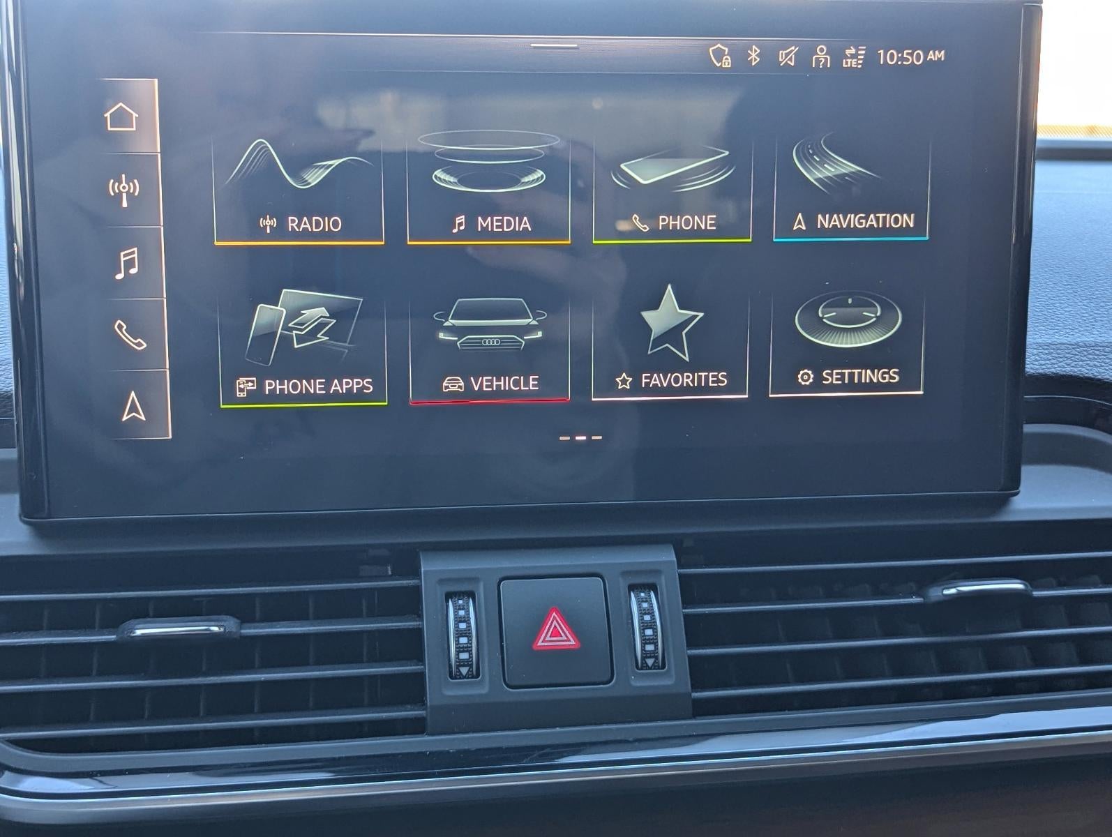 - Radio: Audi Sound System -inc: Audi smartphone interface w/wireless Apple CarPlay, preparation for mobile phone (Bluetooth®), MMI touch display w/10.1" center screen and 2 rear USB charge ports