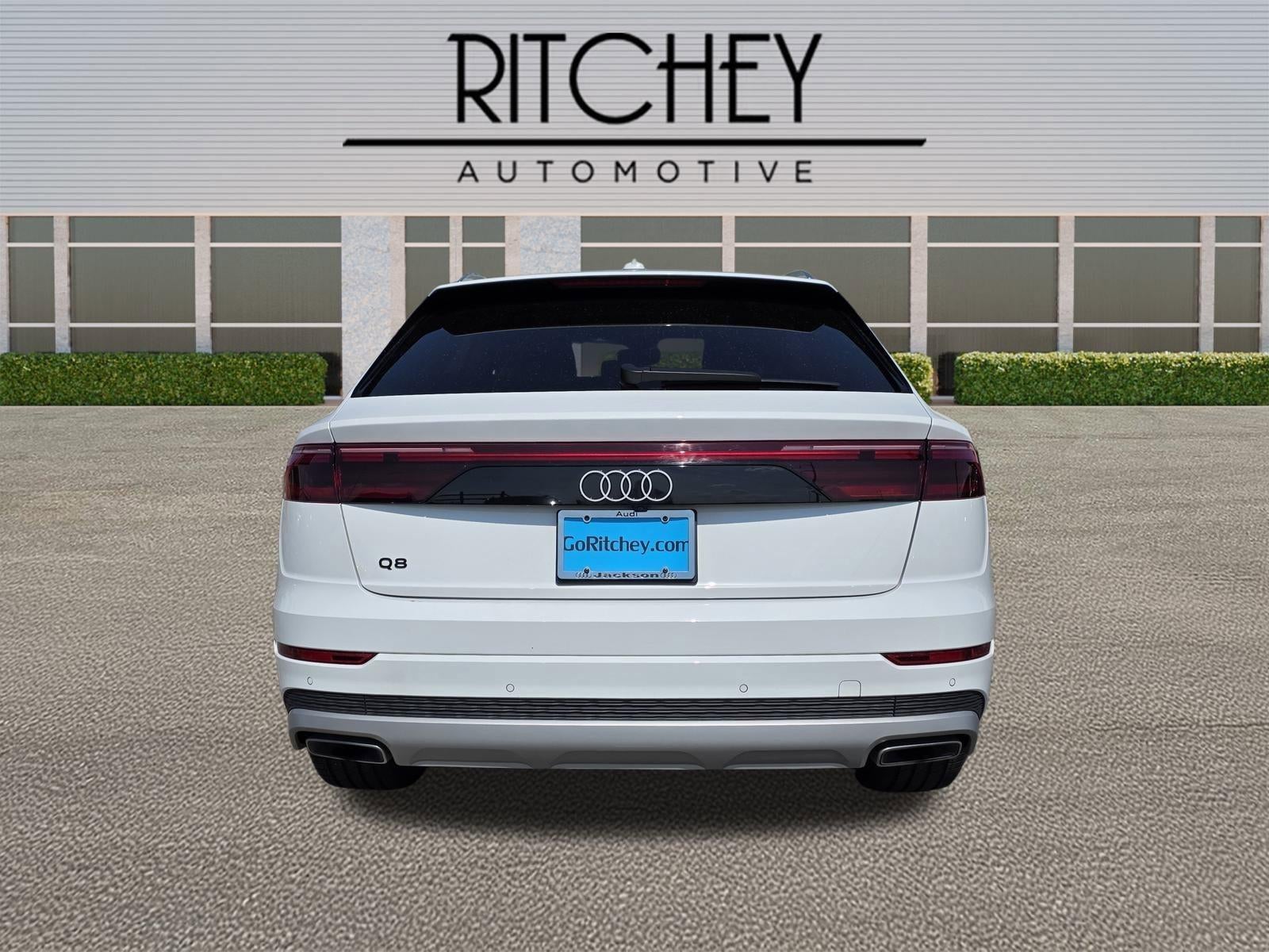 Ritchey Automotive is proud to present you with another True Market Priced Pre-Owned Vehicle. This 2025 Audi Q8 55 Premium Plus is loaded with the following Factory Options:10 Speakers, 4-Wheel Disc Brakes, ABS brakes, Adaptive suspension, Air Conditioning, Alloy wheels, AM/FM radio: SiriusXM w/360L, Auto High-beam Headlights, Auto-dimming door mirrors, Auto-dimming Rear-View mirror, Automatic temperature control, Brake assist, Bumpers: body-color, Compass, Delay-off headlights, Driver door bin, Driver vanity mirror, Dual front impact airbags, Dual front side impact airbags, Electronic Stability Control, Emergency communication system: Audi connect CARE, Exterior Parking Camera Rear, Four wheel independent suspension, Front anti-roll bar, Front Bucket Seats, Front Center Armrest, Front dual zone A/C, Front fog lights, Front reading lights, Fully automatic headlights, Garage door transmitter: HomeLink, Genuine wood door panel insert, Headlight cleaning, Heated door mirrors, Heated Front Bucket Seats, Heated front seats, Illuminated entry, Leather Seating Surfaces, Leather Shift Knob, Leather steering wheel, Low tire pressure warning, Memory seat, Navigation system: Audi MMI Navigation with Touch Response, Occupant sensing airbag, Outside temperature display, Overhead airbag, Overhead console, Panic alarm, Passenger door bin, Passenger vanity mirror, Power door mirrors, Power driver seat, Power Liftgate, Power moonroof: Panoramic, Power passenger seat, Power steering, Power windows, Radio data system, Radio: Audi MMI Navigation Plus with MMI Touch Response, Rain sensing wipers, Rear air conditioning, Rear anti-roll bar, Rear fog lights, Rear reading lights, Rear seat center armrest, Rear side impact airbag, Rear window defroster, Rear window wiper, Remote keyless entry, Security system, Speed control, Speed-sensing steering, Split folding rear seat, Spoiler, Steering wheel memory, Steering wheel mounted audio controls, Tachometer, Telescoping steering wheel, Tilt steering wheel, Traction control, Trip computer, Turn signal indicator mirrors, Variably intermittent wipers, and Wheels: 21" 5-W-Spoke-Design Bicolor Finish.